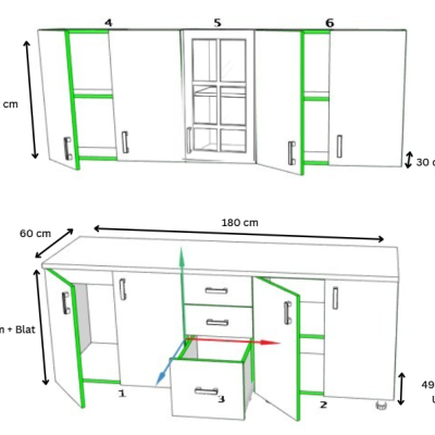Mobilă Bucatarie MDF Alb Lucios 180 cm