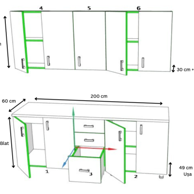 Mobilă Bucatarie MDF Alb Lucios White P100 200 cm