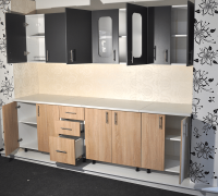 Partea inferioară a colecției modulare Lana include fronturi cu aspect Sonoma și oferă spațiu generos pentru tacâmuri, vase și ustensile de bucătărie. Totodată, include mască pentru chiuvetă, corp cu sertare și dulap pentru depozitare.
