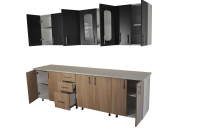 Setul de mobilă de bucătărie Lana 260 cm, realizat din PAL melaminat în finisaj combinat Antracit / Sonoma, este ideal pentru o amenajare modernă, funcțională și bine organizată.