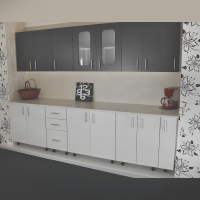 Setul Bucătărie Lana 2.8 m, din PAL Antracit, este ideal pentru cei care caută o soluție modernă și bine organizată în bucătărie. Partea superioară permite o organizare eficientă a cănilor, paharelor și ustensilelor 🍶, în timp ce partea inferioară este perfectă pentru tacâmuri și vase 🍴. De asemenea, oferă spațiu pentru instalarea unei chiuvete practice 🚰.