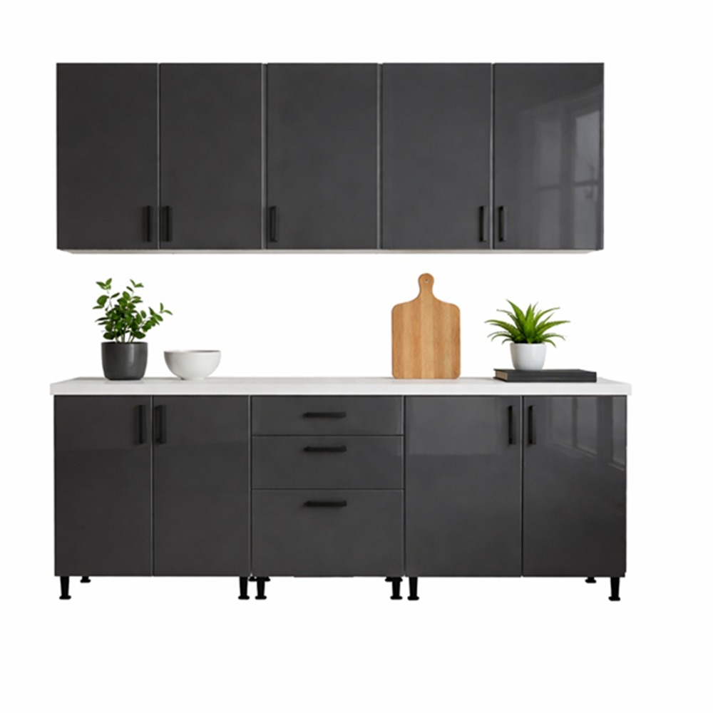Caracteristici principale Bucatarie MDF Lucios Antracit 200 cm: