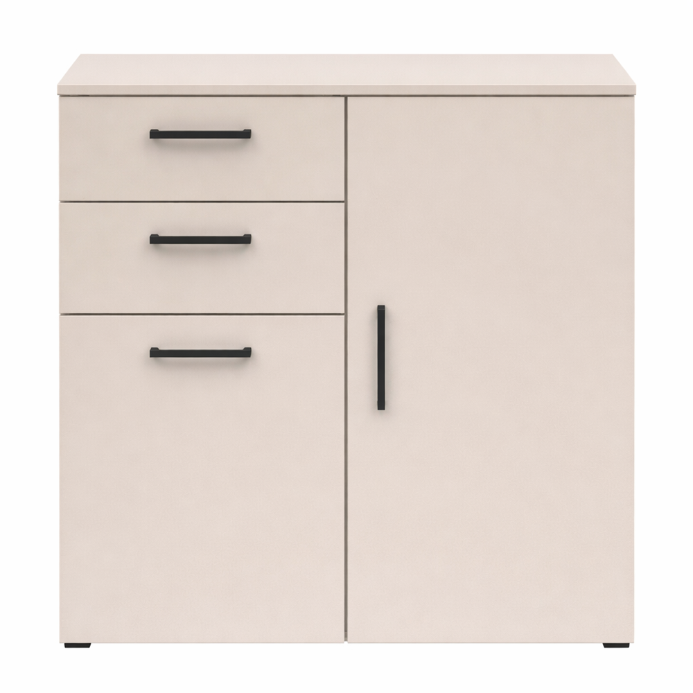 Modelul este prevăzut cu două sertare amplasate în partea superioară, ideale pentru depozitarea obiectelor mici utilizate frecvent. Sub sertare se află o ușă suplimentară pentru organizare eficientă, iar ușa laterală mare oferă acces la un compartiment generos, potrivit pentru depozitarea obiectelor mai voluminoase.
