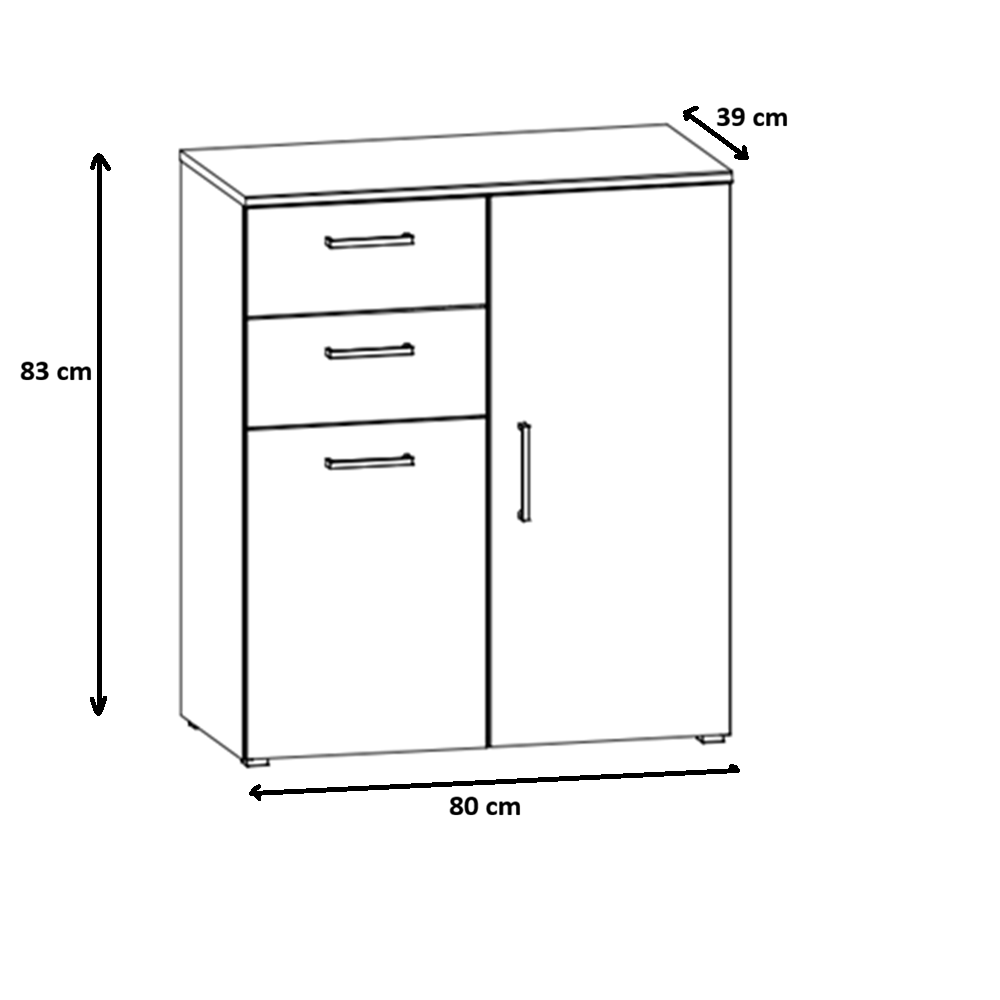 Comoda modernă 80 cm cu 2 sertare și 2 uși PAL sonoma este o soluție practică și elegantă pentru organizarea eficientă a spațiului din locuința ta. Datorită dimensiunilor compacte și compartimentării inteligente, această comodă este ideală pentru dormitor, living, hol sau birou, oferind spațiu optim pentru depozitarea obiectelor esențiale.
