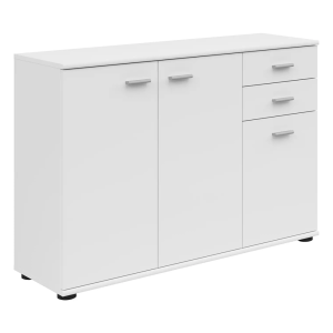 Realizată din PAL melaminat alb, comoda asigură stabilitate și rezistență în timp. Designul modern și liniile simple permit integrarea ușoară în orice stil de amenajare interioară, fiind o piesă de mobilier practică și durabilă.