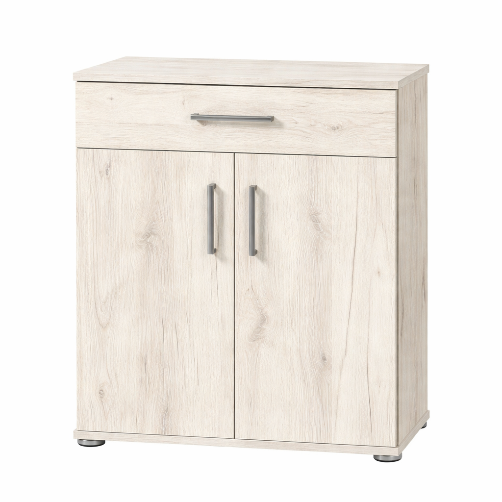 Comoda modernă 80 cm cu sertar și 2 uși PAL stejar alb este o soluție practică și elegantă pentru organizarea eficientă a spațiului din locuința ta. Datorită dimensiunilor compacte și compartimentării inteligente, această comodă este ideală pentru dormitor, living, hol sau birou, oferind spațiu optim pentru depozitarea obiectelor esențiale.
