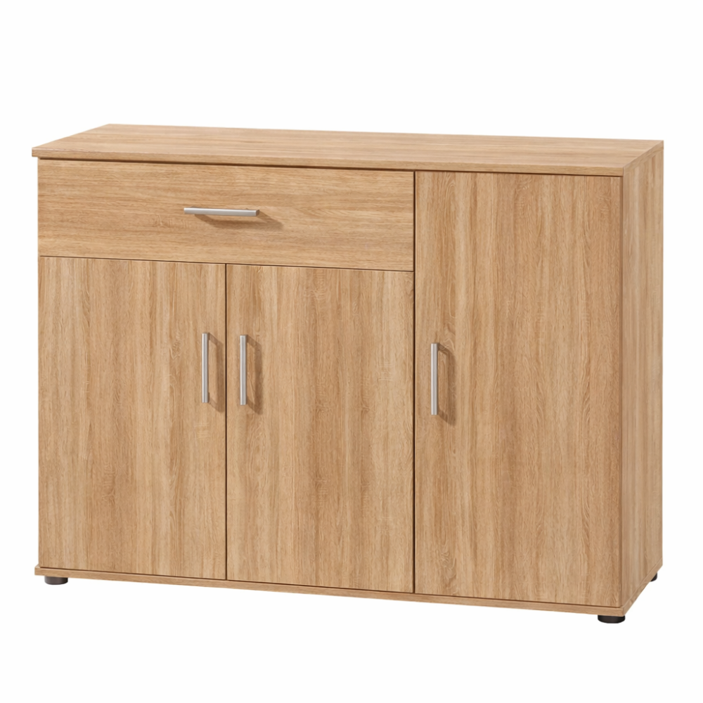 Comoda modernă 90 cm cu 3 uși și sertar PAL sonoma este o alegere practică și compactă pentru organizarea eficientă a spațiului din locuința ta. Datorită designului funcțional și dimensiunilor echilibrate, această comodă este potrivită pentru dormitor, living, hol sau birou, oferind spațiu optim pentru depozitare zilnică.