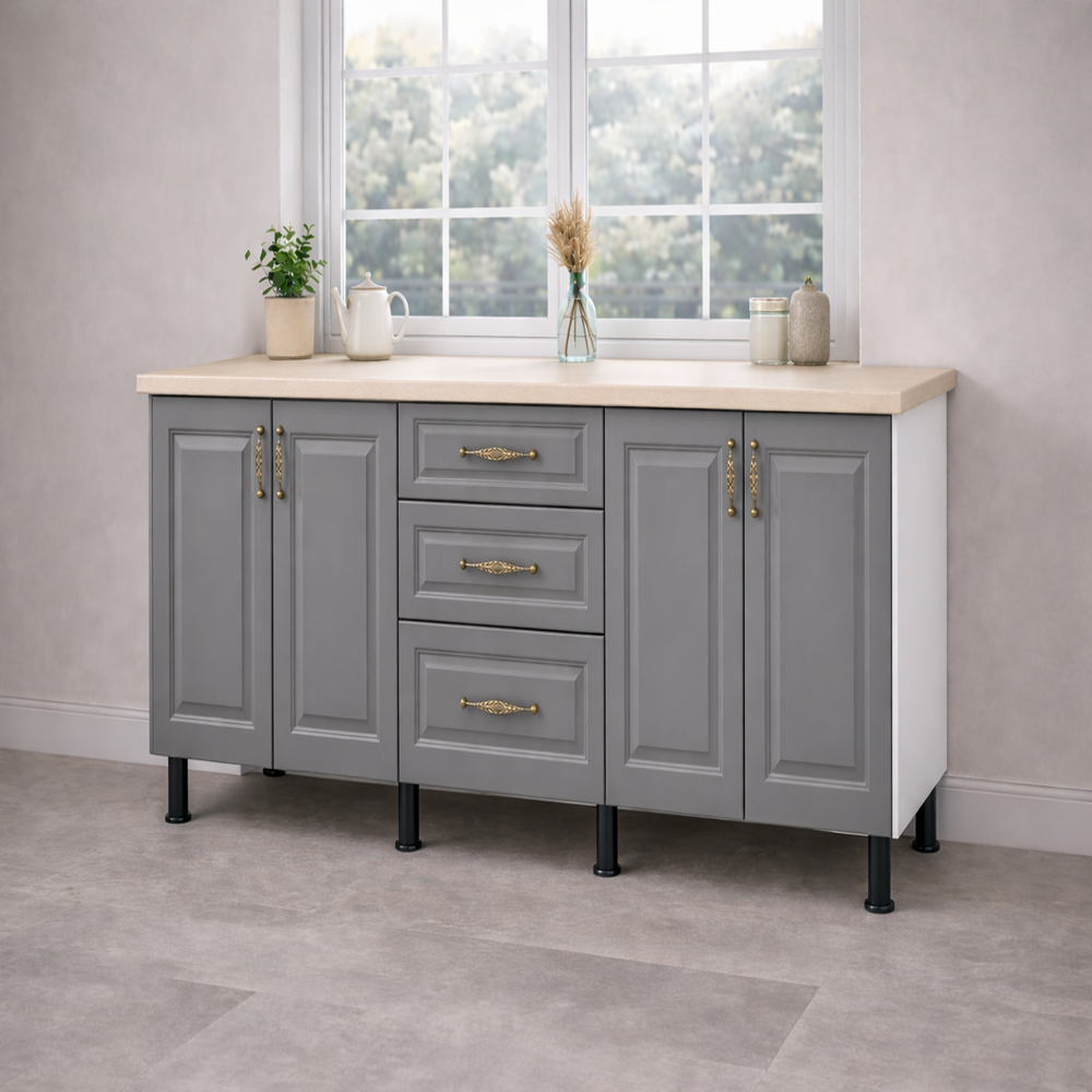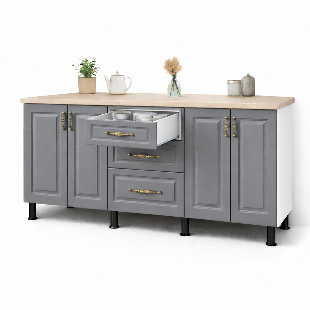 Corp baza bucatarie 200 cm MDF gri este soluția ideală pentru cei care doresc să îmbine funcționalitatea cu un design modern și elegant. Acest corp inferior de bucătărie ieftină oferă soluții eficiente de organizare și este realizat din materiale de calitate, toate la un preț accesibil.