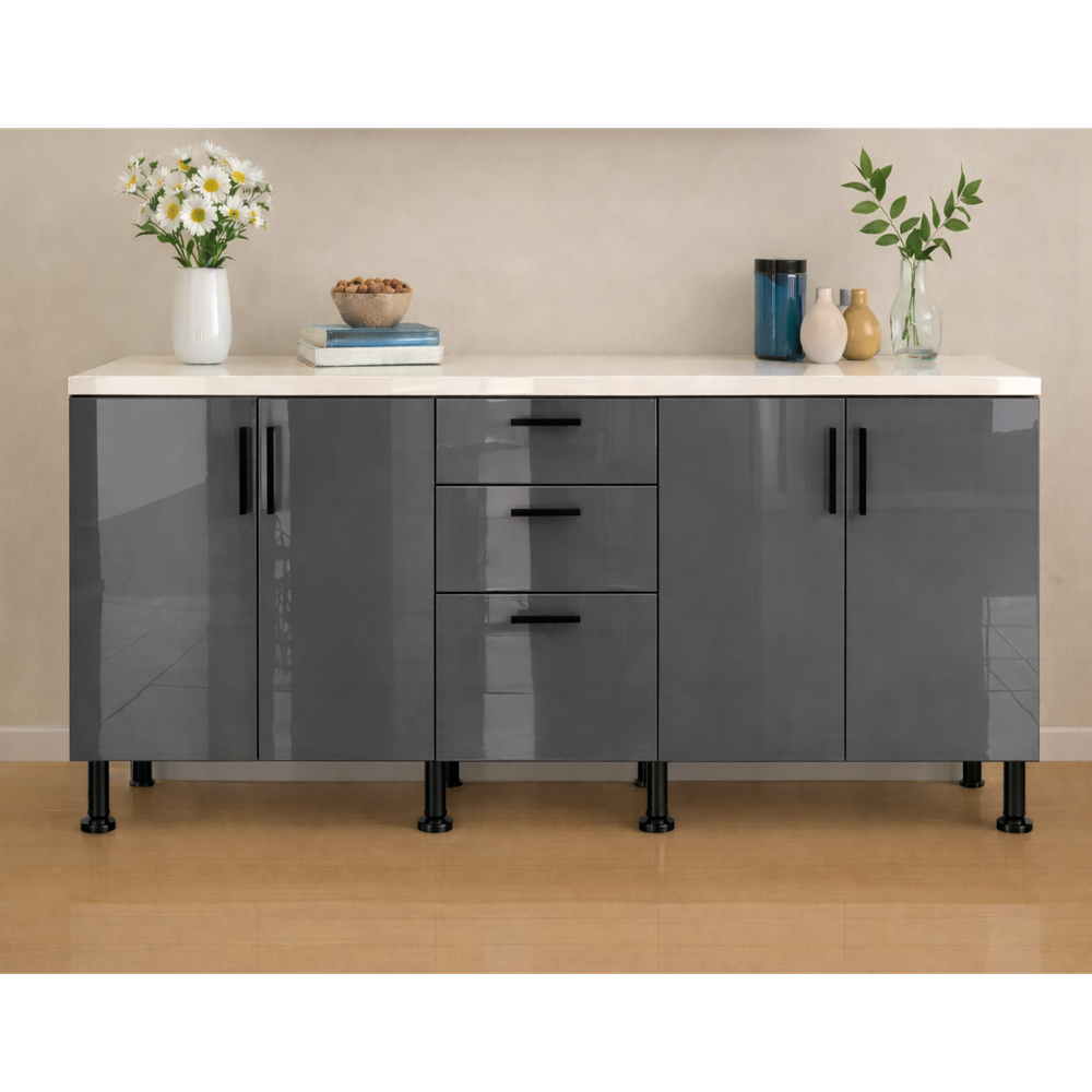 Corp baza bucatarie 200 cm MDF lucios antracit este soluția ideală pentru cei care doresc să îmbine funcționalitatea cu un design modern și elegant. Acest corp inferior de bucătărie ieftină oferă soluții eficiente de organizare și este realizat din materiale de calitate, toate la un preț accesibil.