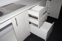 În orice bucătărie modernă, spațiul de depozitare este esențial. Corp baza bucatarie Stejar alb 260 cm oferă soluții eficiente pentru organizarea tacâmurilor, paharelor, farfuriilor și alimentelor, fiind o alegere ideală pentru un spațiu de gătit bine organizat și estetic plăcut.
