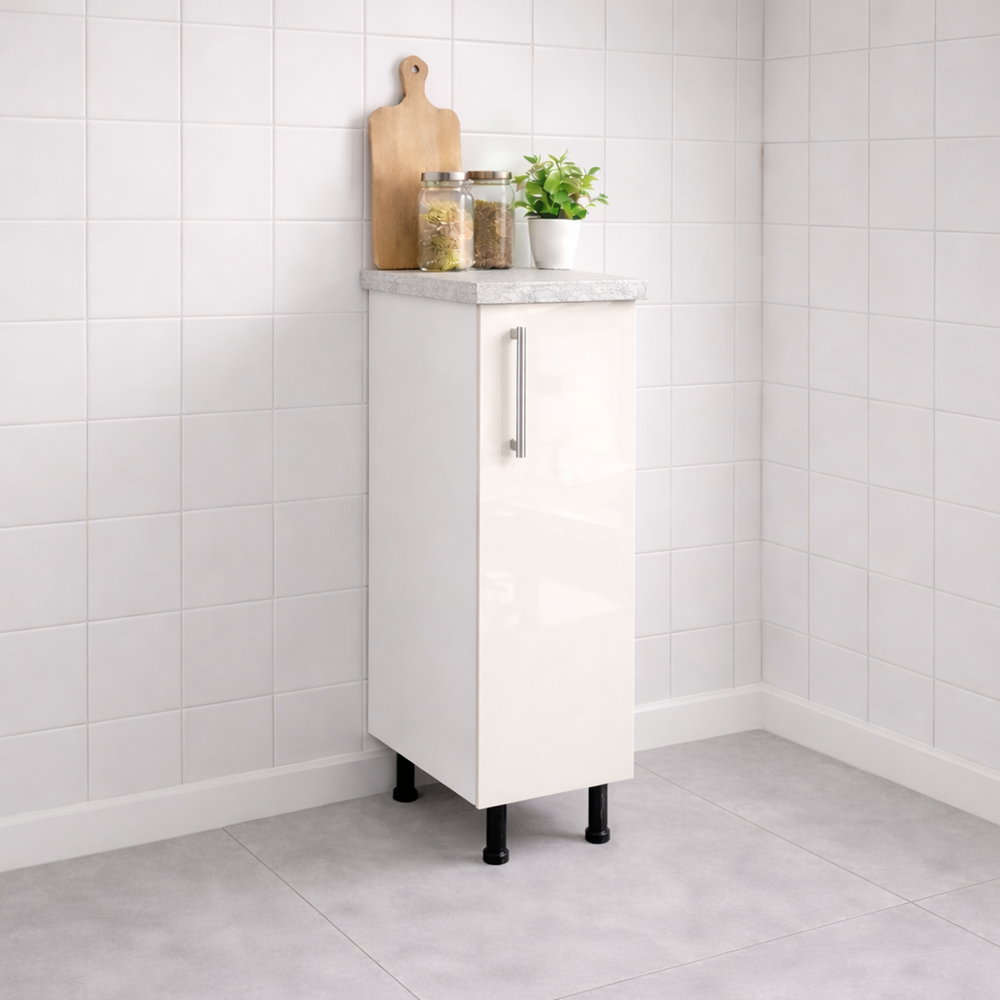 Acest corp bucatarie 20 cm MDF lucios bianco  , cu blat  este soluția perfectă pentru zonele înguste ale bucătăriei, unde ai nevoie de un spațiu suplimentar de depozitare fără a compromite designul. Realizat din PAL melaminat de înaltă calitate, în nuanța elegantă MDF lucios bianco, aduce un plus de stil și funcționalitate oricărei bucătării moderne.