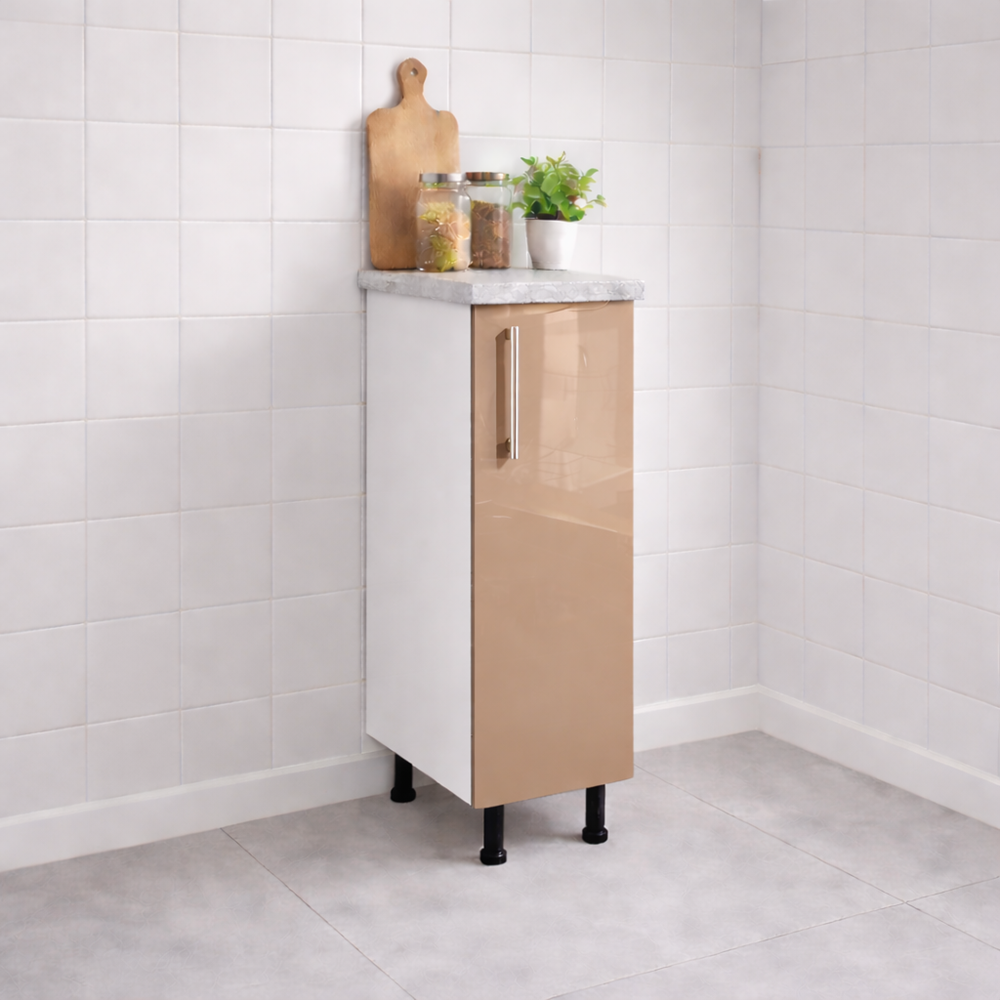 Acest corp bucatarie 20 cm MDF lucios cappuccino , cu blat este soluția perfectă pentru zonele înguste ale bucătăriei, unde ai nevoie de un spațiu suplimentar de depozitare fără a compromite designul. Realizat din PAL melaminat de înaltă calitate, în nuanța elegantă MDF lucios cappuccino , aduce un plus de stil și funcționalitate oricărei bucătării moderne.