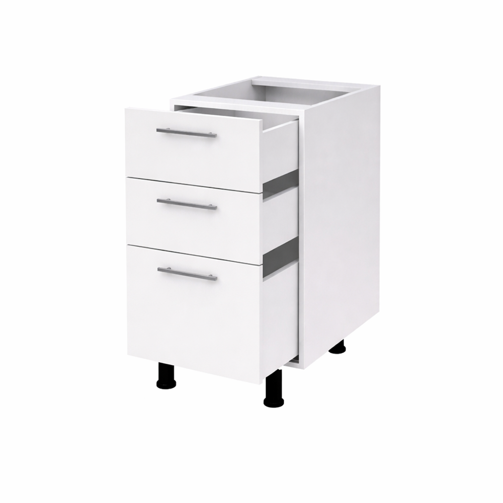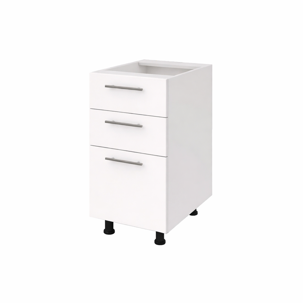 Corp bază bucătărie 40 cm cu 3 sertare – ideal pentru o organizare eficientă și modernă. Realizat din PAL melaminat, sertare pe glisiere cu bile și picioare reglabile. Oferă spațiu generos de depozitare și rezistență în timp.