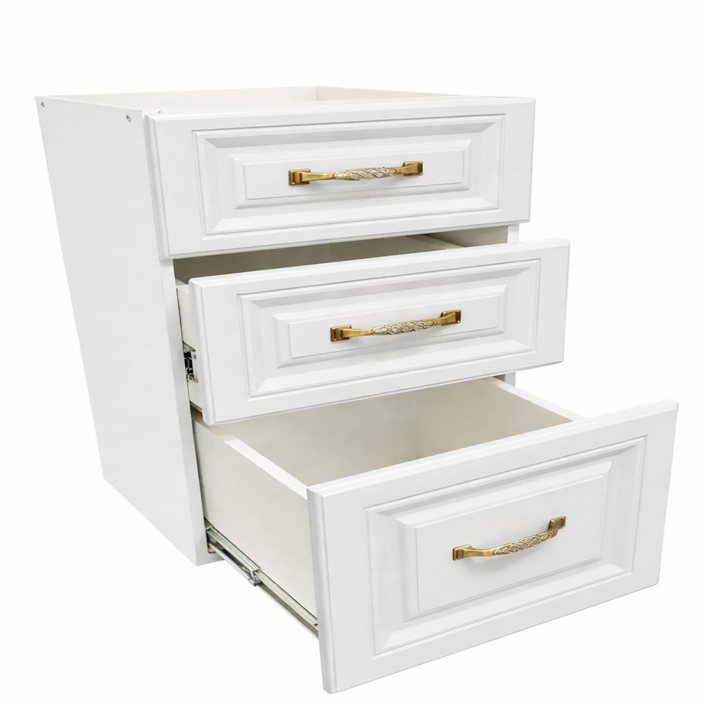 Construit pentru a fi eficient, corpul de bucatarie are un design simplu, potrivit sa se incadreze in orice stil. Acest model de corp de baza are carcasa de culoare alba, iar fronturile sertarelor vin in culoarea ALB. Fabricat din PAL melaminat de 18 mm, corpul de baza cu 3 sertare vine fara blat, la fel ca toate celelalte corpuri inferioare modulare pentru bucatarie. Verifica si restul corpurilor de mobilier pentru bucatarie din aceasta colectie.
