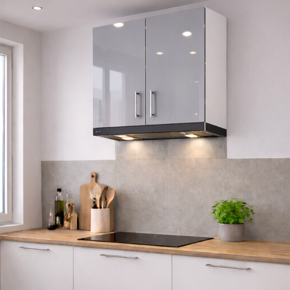Corp Bucătărie Hota telescopica 60cm MDF lucios gri, cu 2 usi