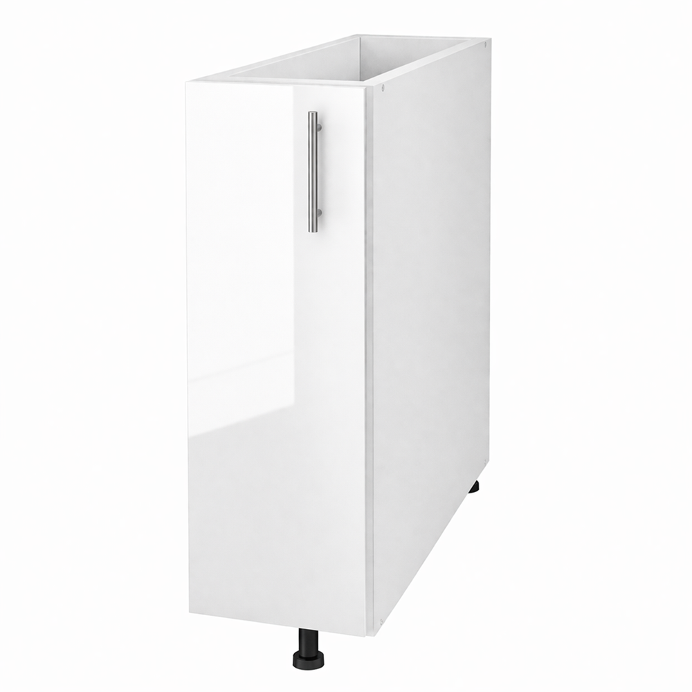 Acest corp bucatarie inferior 15 cm fara blat, MDF lucios alb este soluția perfectă pentru zonele înguste ale bucătăriei, unde ai nevoie de un spațiu suplimentar de depozitare fără a compromite designul. Realizat din PAL melaminat de înaltă calitate pe carcase. Usa în nuanța elegantă MDF lucios alb, aduce un plus de stil și funcționalitate oricărei bucătării moderne.