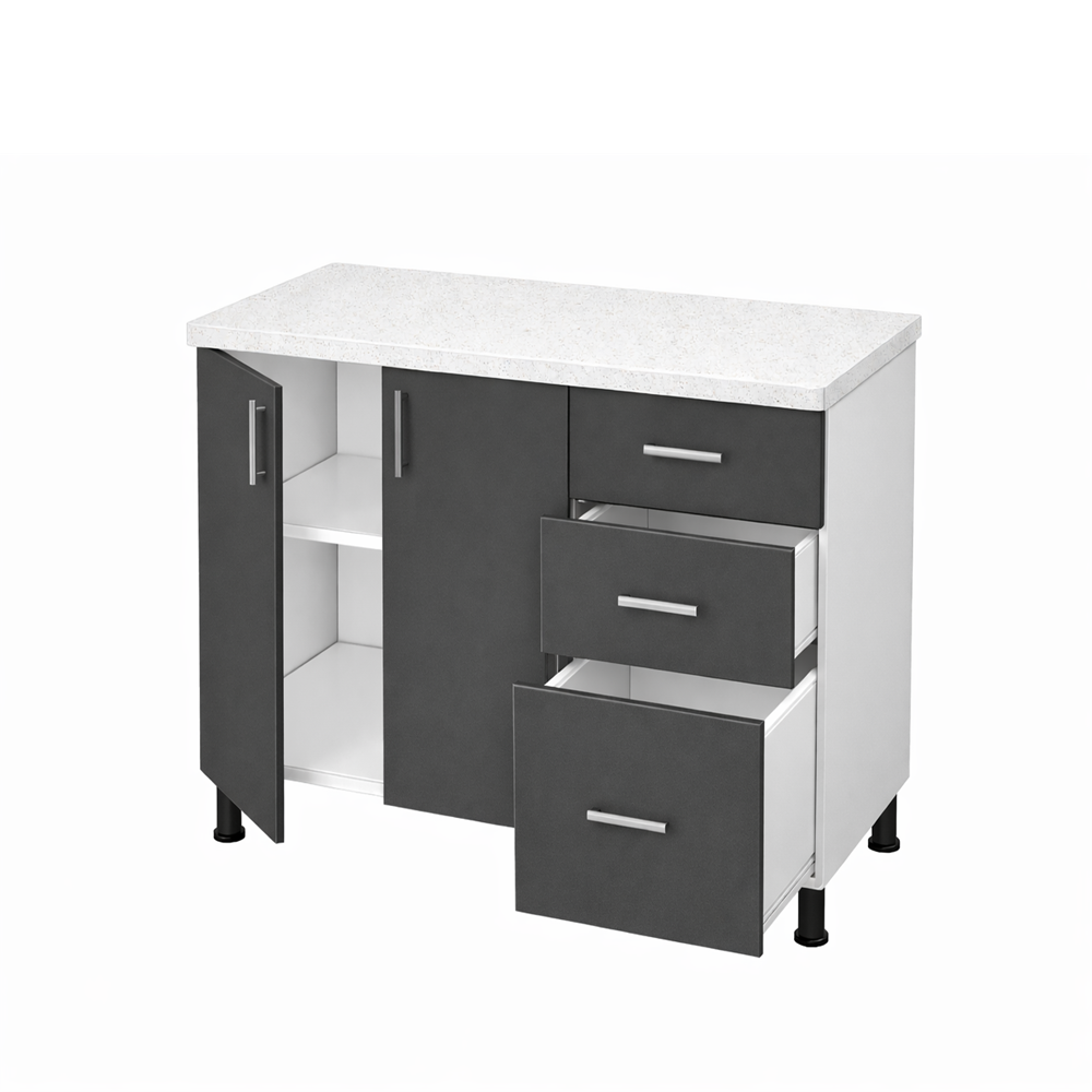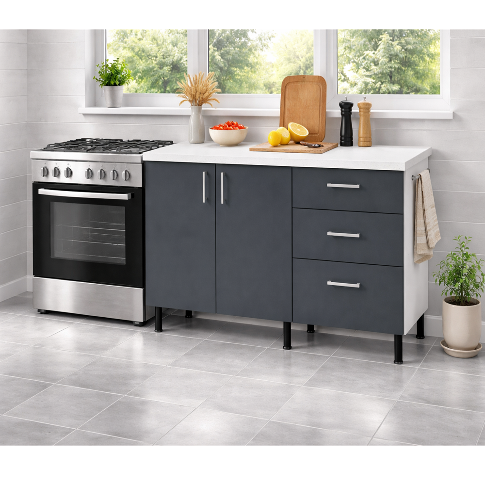 Corp inferior bucatarie 120 cm cu blat, PAL antracit este soluția ideală pentru cei care doresc să îmbine funcționalitatea cu un design modern și elegant. Acest corp inferior de bucătărie oferă soluții eficiente de organizare și este realizat din materiale de calitate, toate la un preț de producător, fiind perfect pentru cei care caută mobila ieftină și de calitate.