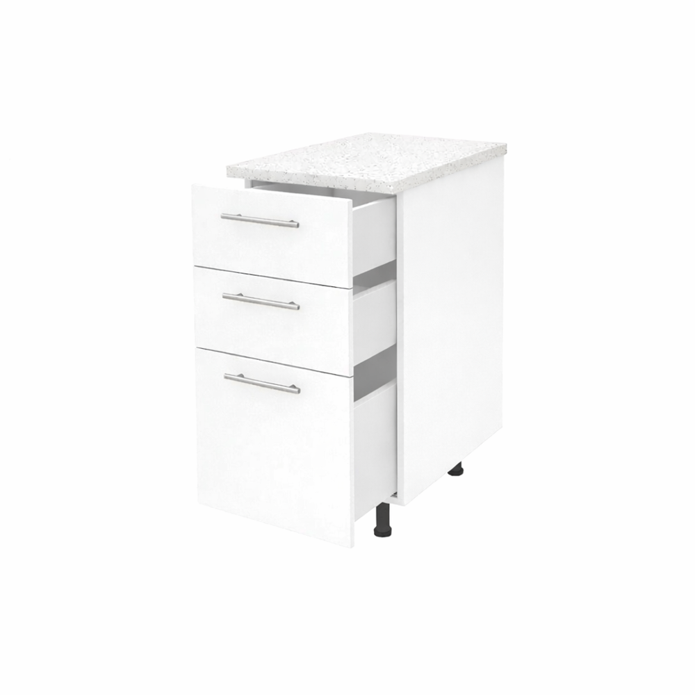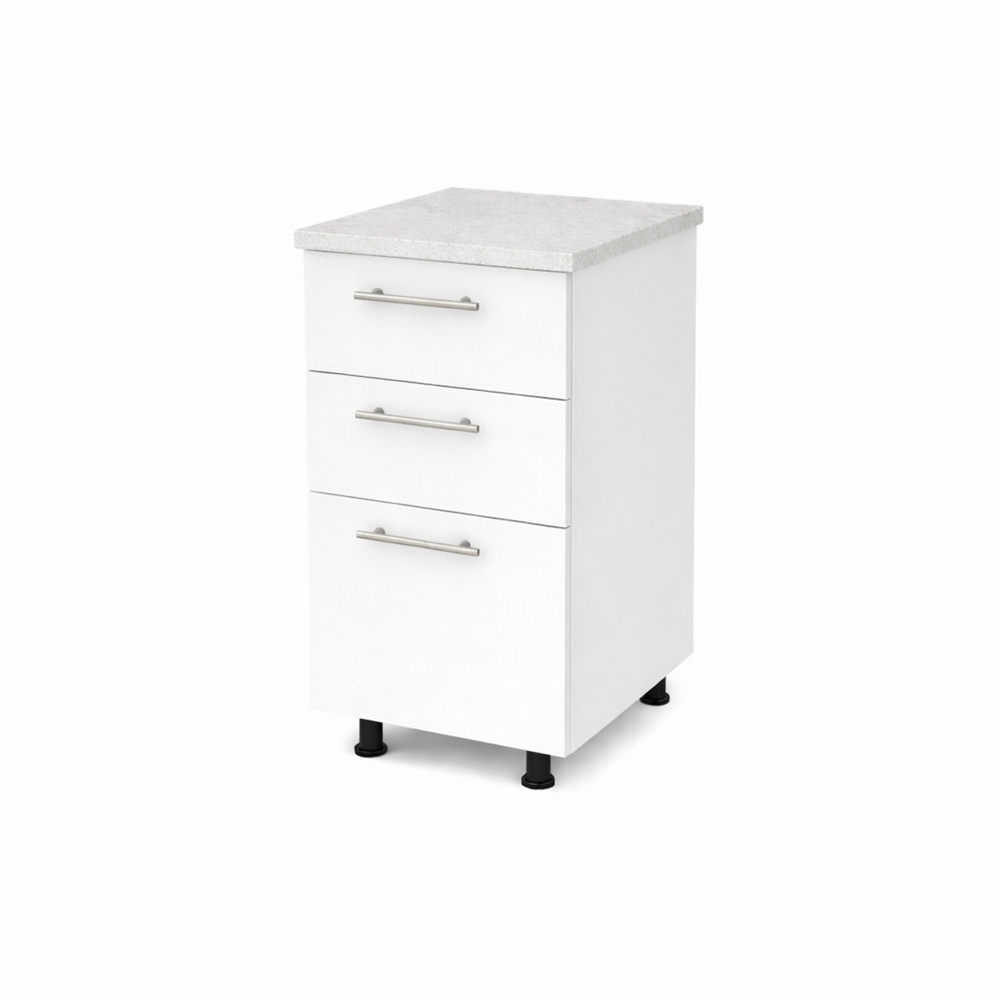 Optimizeaza-ti spatiul de depozitare in bucatarie cu acest corp inferior bucatarie 40cm cu sertare PAL alb, cu blat. Un element esential pentru orice bucatarie moderna. Cu un design compact si eficient. Acest dulap ofera solutii practice. Util pentru organizarea tacamurilor, paharelor, farfuriilor si alimentelor, totul la indemana.