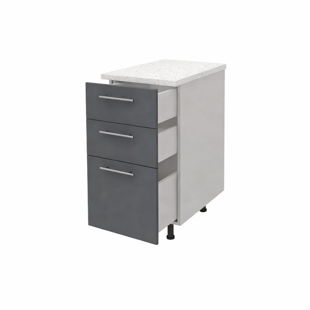 - Design functional si elegant 🗄️: Corp inferior bucatarie 40cm cu sertare PAL antracit, cu blat este perfect pentru organizarea eficienta a spatiului din bucatarie. Sertarele spatioase si glisierele cu bile asigura o deschidere si inchidere usoara, oferind acces rapid la toate articolele depozitate.