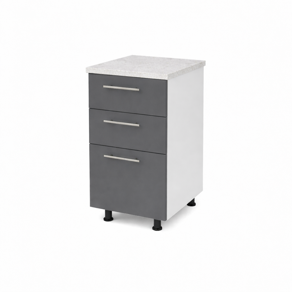 Optimizeaza-ti spatiul de depozitare in bucatarie cu acest corp inferior bucatarie 40cm cu sertare PAL antracit, cu blat. Un element esential pentru orice bucatarie moderna. Cu un design compact si eficient. Acest dulap ofera solutii practice. Util pentru organizarea tacamurilor, paharelor, farfuriilor si alimentelor, totul la indemana.