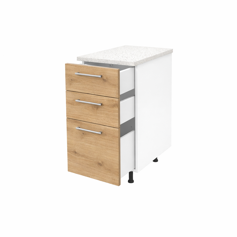 Optimizeaza-ti spatiul de depozitare in bucatarie cu acest corp inferior bucatarie 40cm cu sertare PAL sonoma, cu blat. Un element esential pentru orice bucatarie moderna. Cu un design compact si eficient. Acest dulap ofera solutii practice. Util pentru organizarea tacamurilor, paharelor, farfuriilor si alimentelor, totul la indemana.
