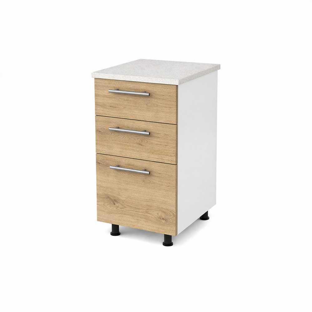 - Design functional si elegant 🗄️: Corp inferior bucatarie 40cm cu sertare PAL sonoma, cu blat este perfect pentru organizarea eficienta a spatiului din bucatarie. Sertarele spatioase si glisierele cu bile asigura o deschidere si inchidere usoara, oferind acces rapid la toate articolele depozitate.