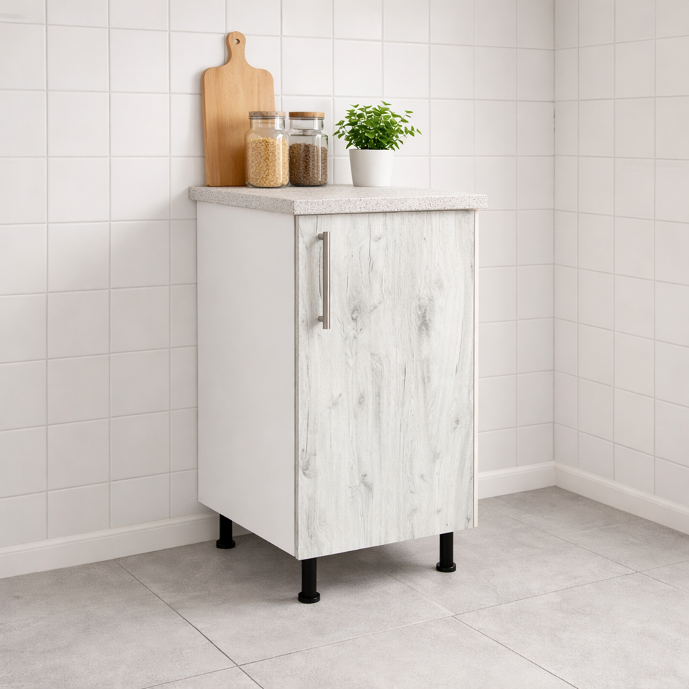 - Design modern si functional 🏡: Corp Inferior Bucatarie cu blat 40cm PAL stejar alb k001 este ideal pentru bucatarii de orice dimensiune, oferind un spatiu generos pentru depozitare si o suprafata de lucru robusta datorita blatului termorezistent.