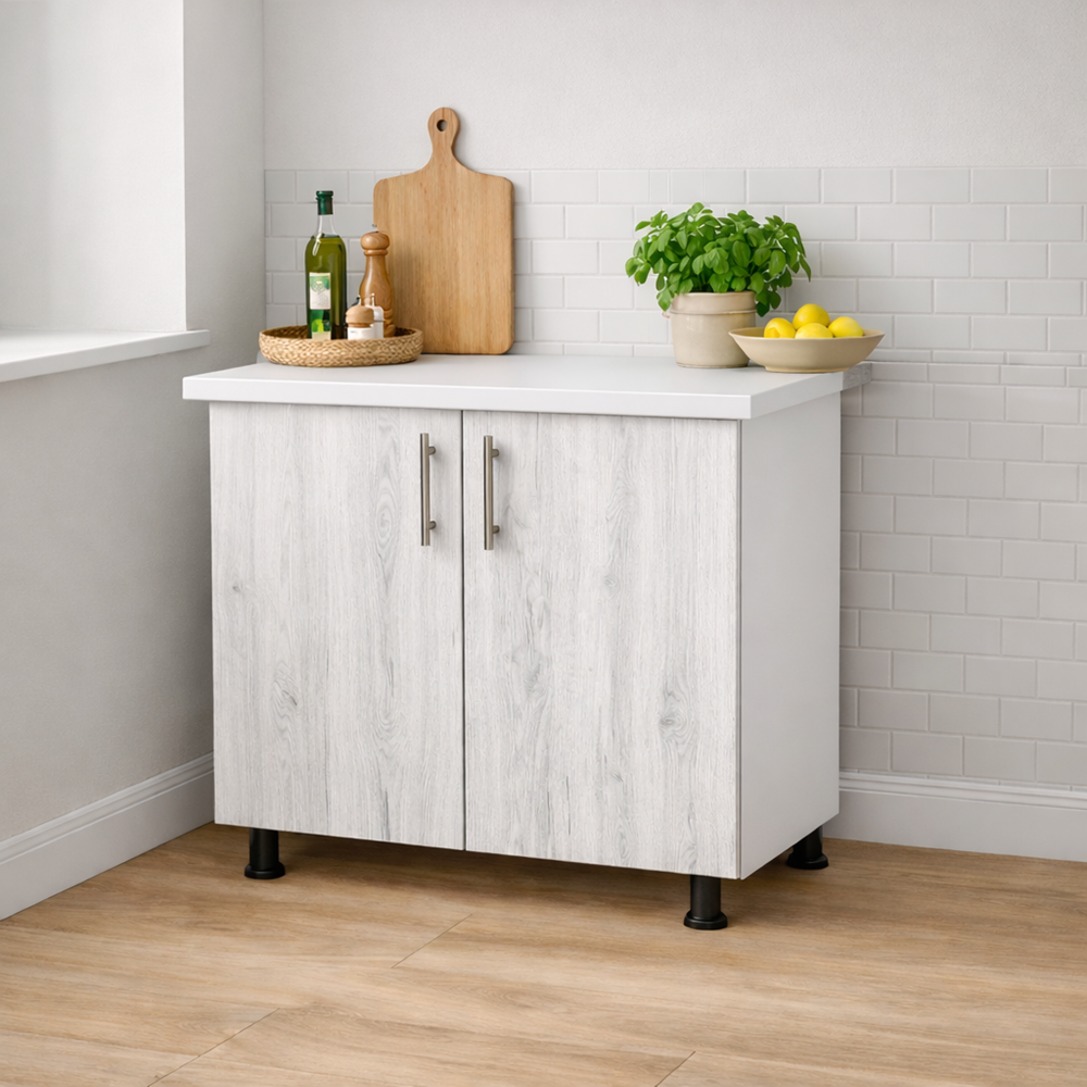 - Funcționalitate completă 🛠️: Cu două uși și o poliță interioară, acest dulap de bucătărie oferă un spațiu generos pentru organizarea obiectelor esențiale din bucătăria ta.
