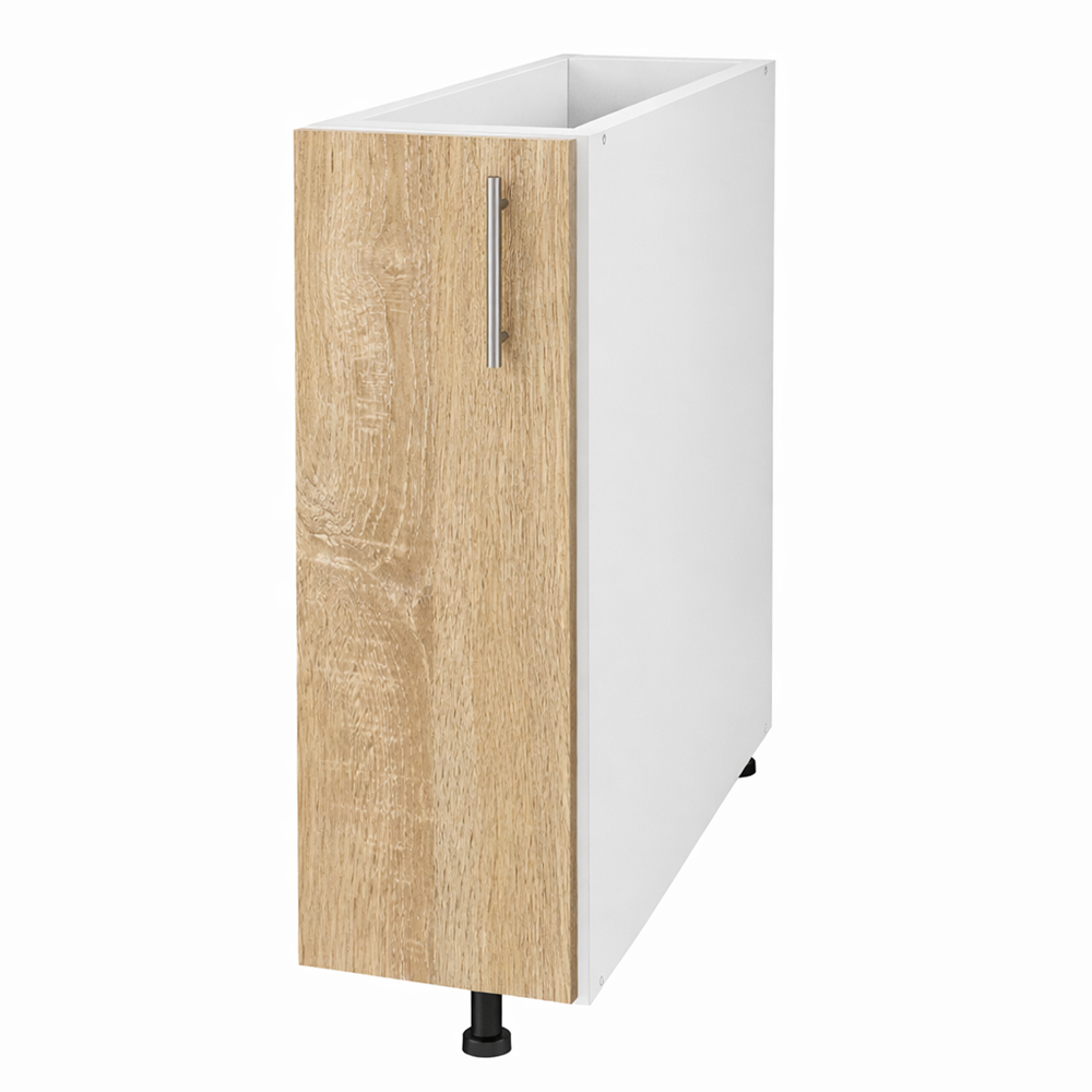 Acest corp bucatarie inferior 20 cm fara blat, sonoma este soluția perfectă pentru zonele înguste ale bucătăriei, unde ai nevoie de un spațiu suplimentar de depozitare fără a compromite designul. Realizat din PAL melaminat de înaltă calitate, în nuanța elegantă sonoma, aduce un plus de stil și funcționalitate oricărei bucătării moderne.