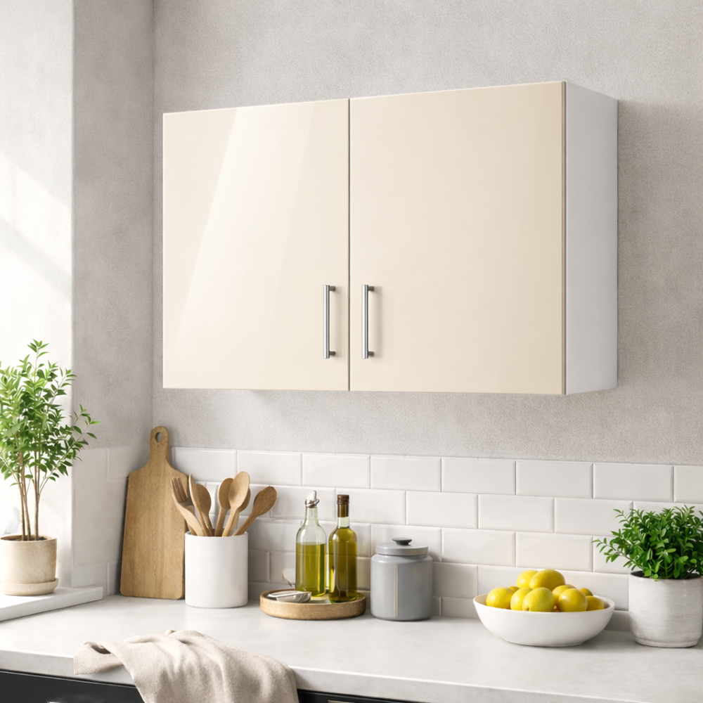 Adaugă un plus de stil, ordine și eficiență în bucătăria ta cu acest Corp suspendat bucatarie 80 cm MDF lucios crem, prevăzut cu 2 uși și spațiu interior generos. Cu un design modern și elegant, dulapul este conceput pentru a oferi soluții inteligente de depozitare, fiind ideal pentru farfurii, tacâmuri, pahare și alte obiecte esențiale din bucătărie.