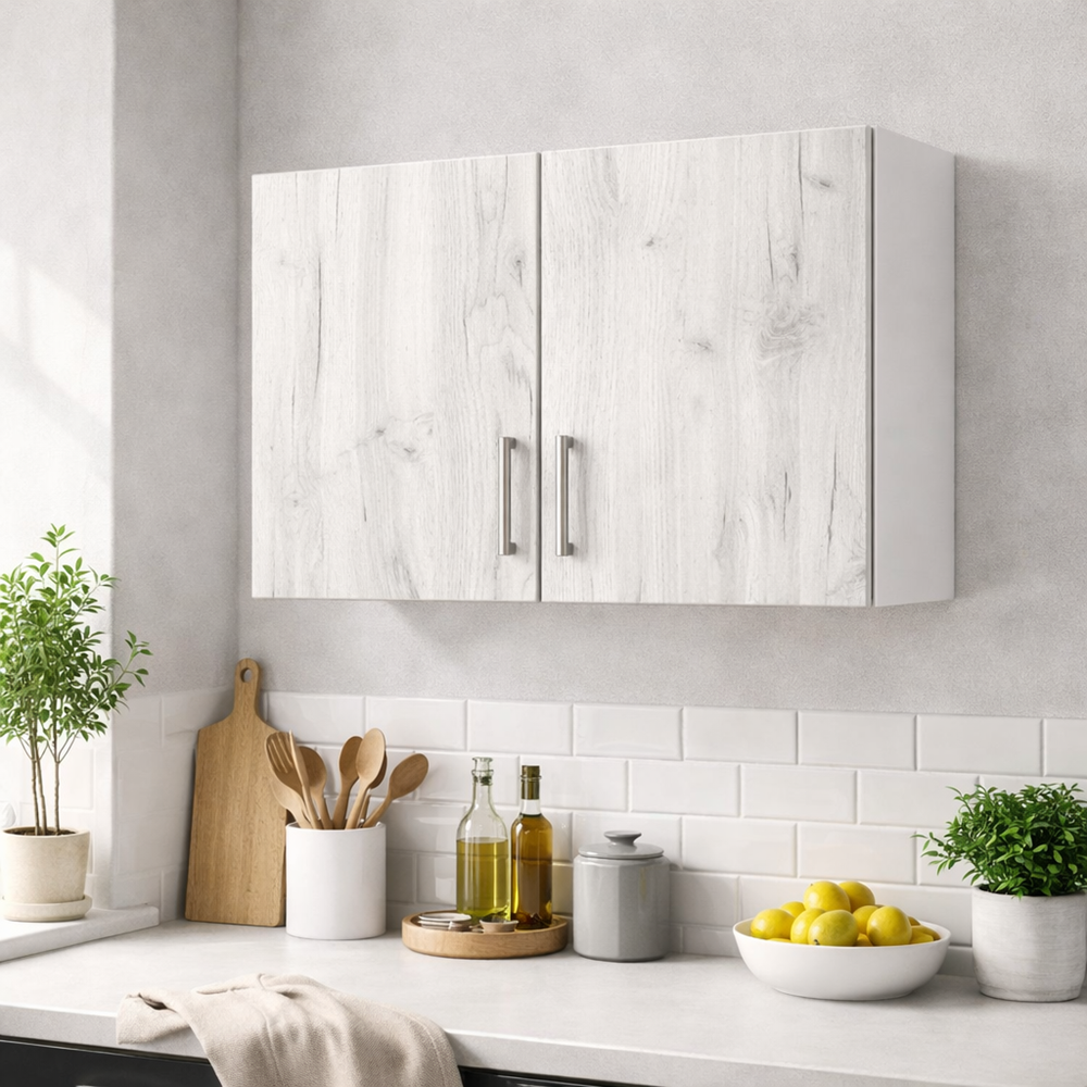 Adaugă un plus de stil, ordine și eficiență în bucătăria ta cu acest Corp suspendat bucatarie 80 cm PAL stejar alb, prevăzut cu 2 uși și spațiu interior generos. Cu un design modern și elegant, dulapul este conceput pentru a oferi soluții inteligente de depozitare, fiind ideal pentru farfurii, tacâmuri, pahare și alte obiecte esențiale din bucătărie.