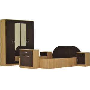 Mobila dormitor cu pat mijloc si sifonier glisant sonoma