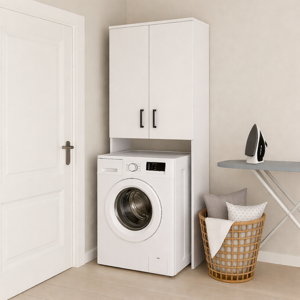 Organizează eficient spațiul din baie cu dulap Mașină de Spălat 65x35x200 cm, PAL alb. Ideal si pentru spălătorie.Alege un dulap practic și elegant.Este realizat din PAL melaminat Kronospan. Are finisaj modern în nuanță alb.Culoarea este caldă și rafinată.Se potrivește în interiorul modern.