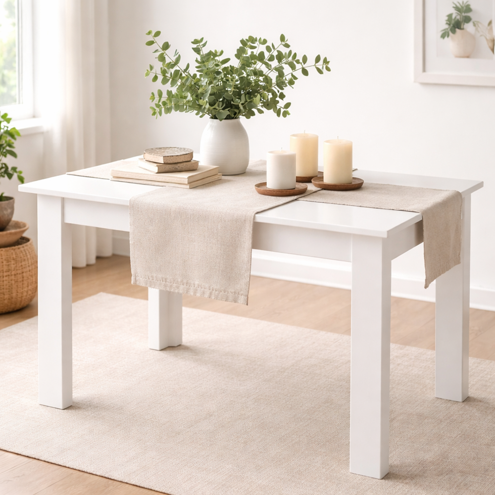 . Datorita finisajului alb, aceasta masa de bucatarie poate fi integrata cu usurinta alaturi de celelalte piese de mobilier si obiecte de decor. Materialul din care este confectionata aceasta masa de bucatarie este usor de intretinut.