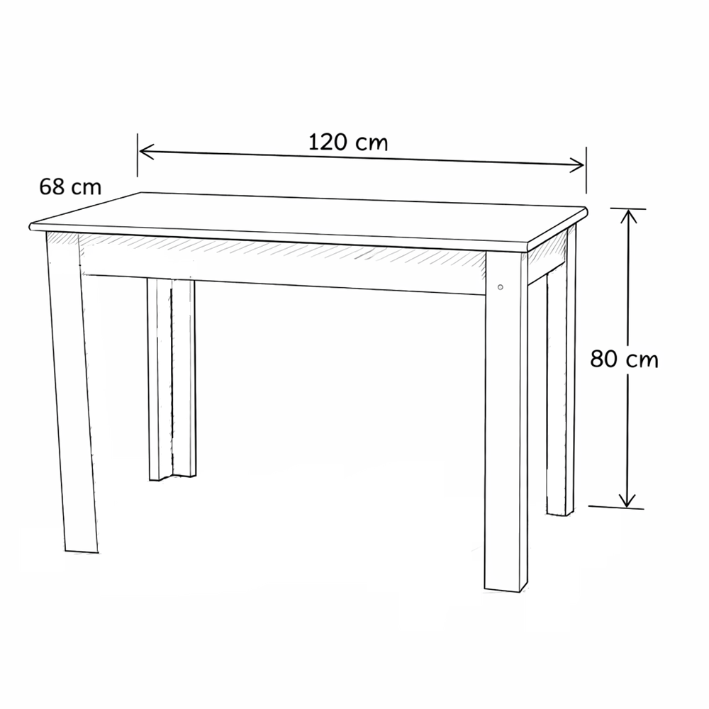 Aceasta masa are dimensiuni echilibrate, fiind ideala pentru spatii mici sau medii, precum bucatarii, zone de dining sau camere multifunctionale. Blatul dreptunghiular ofera o suprafata suficienta pentru servirea mesei, lucru sau activitati diverse, fara a ocupa mult loc. Structura este realizata din pal melaminat, cu finisaj deschis ce evidentiaza textura naturala si creeaza un aspect cald si modern.