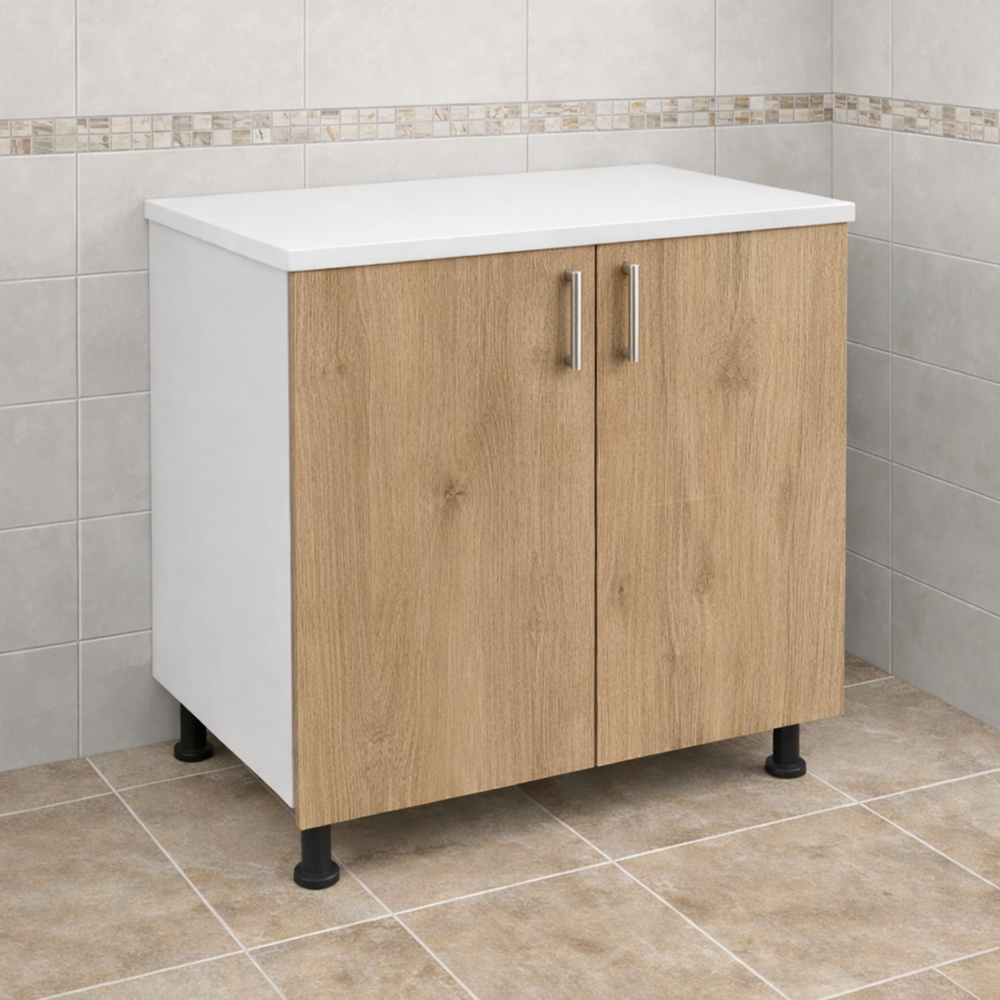 Masca chiuveta bucatarie cu blat 80cm PAL sonoma este soluția perfectă pentru a adăuga stil.Usureaza organizarea și funcționalitatea în zona de lucru a bucătăriei. Această mască modernă protejează spațiul de sub chiuvetă. Ascunde instalațiile și oferă un aspect elegant datorită decorului modern.Are o nuanță caldă și naturală din colecțiile de mobilier .PErfectă pentru majoritatea chiuvetelor standard de bucătărie de până la 80 cm.Această mască oferă un echilibru ideal între durabilitate și estetică.