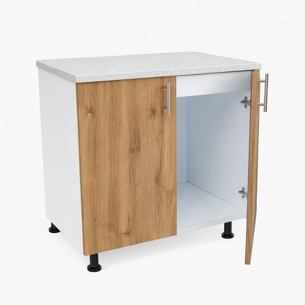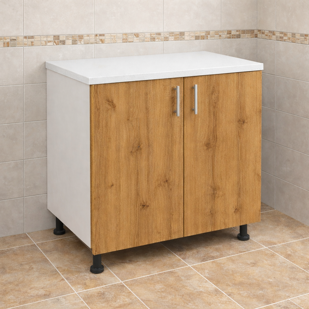 Masca chiuveta bucatarie cu blat 80cm PAL stejar auriu este soluția perfectă pentru a adăuga stil.Usureaza organizarea și funcționalitatea în zona de lucru a bucătăriei. Această mască modernă protejează spațiul de sub chiuvetă. Ascunde instalațiile și oferă un aspect elegant datorită decorului modern.Are o nuanță caldă și naturală din colecțiile de mobilier .PErfectă pentru majoritatea chiuvetelor standard de bucătărie de până la 80 cm.Această mască oferă un echilibru ideal între durabilitate și estetică.