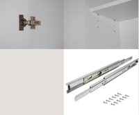 • Feronerie inclusă: balamale metalice, glisiere metalice pentru sertare cu deschidere lină