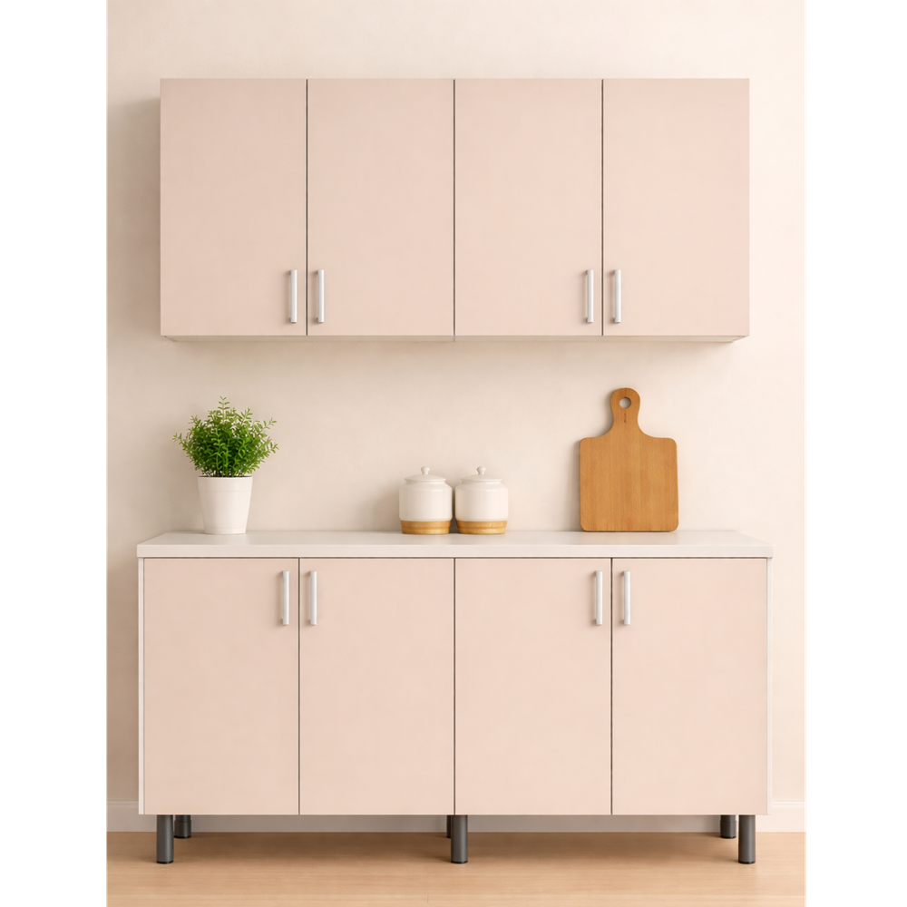 Set compact Mobilă Bucătărie casmir 160 cm cu blat cu fronturi din PAL CASMIR și blat termorezistent Alb Mersin, conceput pentru spații moderne și elegante.