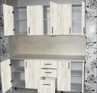 Această bucătărie se livrează în pachete, cu schiță de montaj și feroneria necesară pentru asamblare. Chiuveta, electrocasnicele și elementele de decor NU SUNT INCLUSE în preț (sunt doar pentru prezentare).