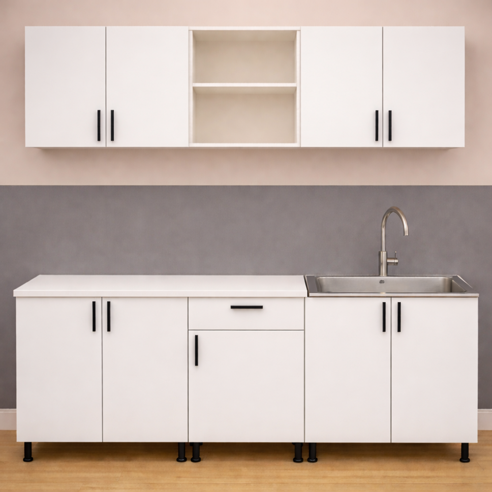 Mobila bucatarie Mia 180 cm PAL alb- Funcționalitate și Design Modern