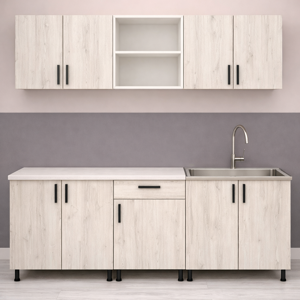 Mobila bucatarie Mia 180 cm PAL stejar alb- Funcționalitate și Design Modern
