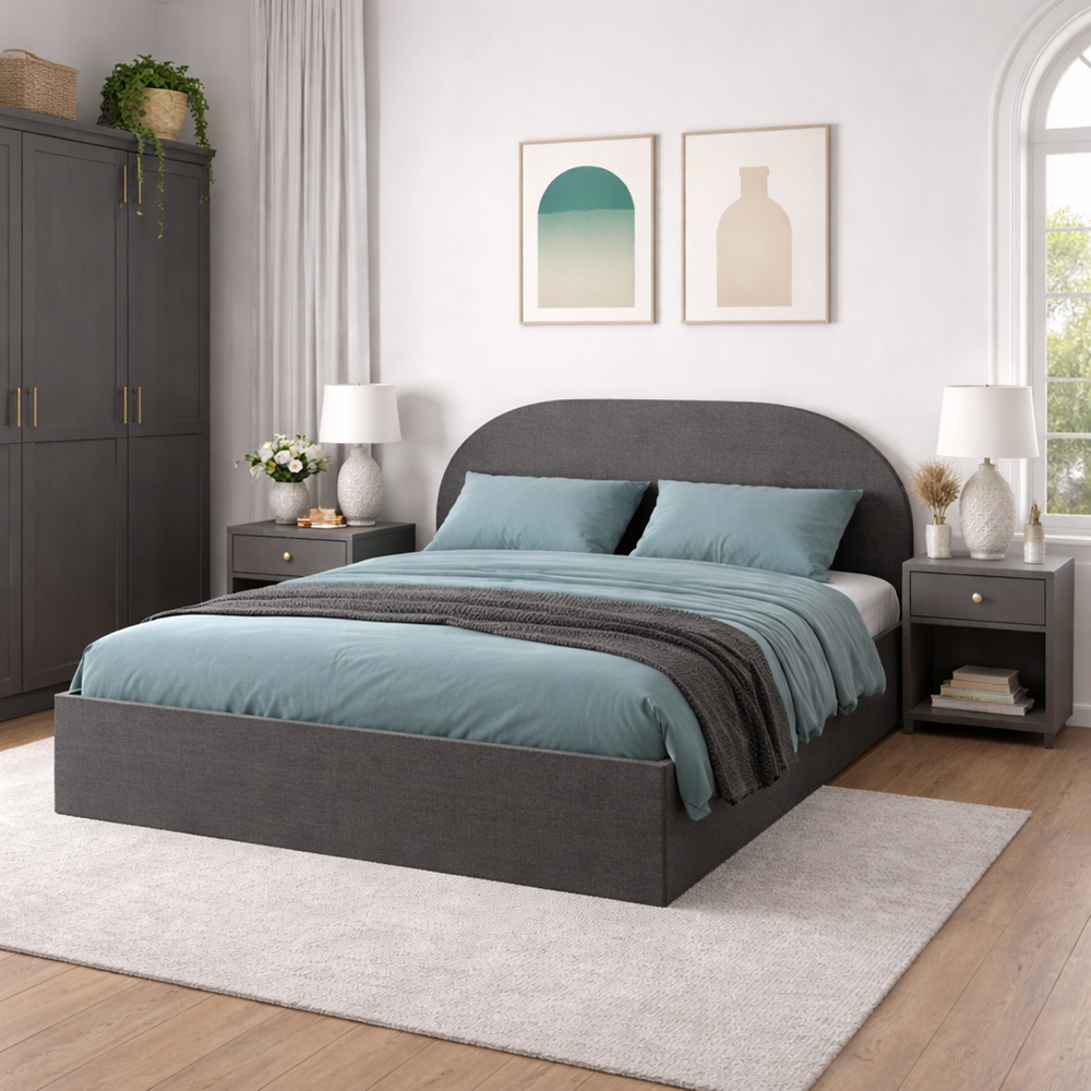 Pat din PAL antracit pentru saltea 160 x 200 cm rezistent , ideal pentru dormitoare moderne,somieră din PALși picioare din plastic care protejează pardoseala.