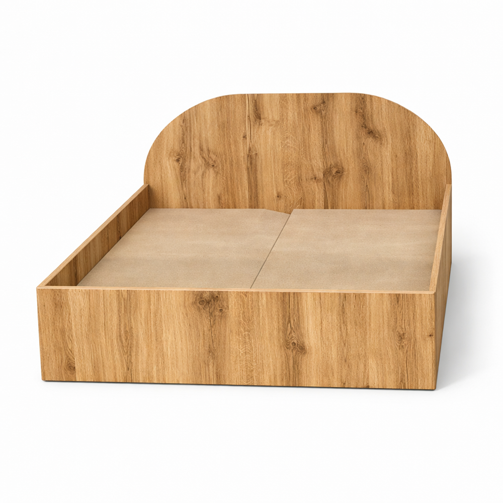 Pat din PAL stejar auriu pentru saltea 140 x 200 cm rezistent , ideal pentru dormitoare moderne,somieră din PALși picioare din plastic care protejează pardoseala.
