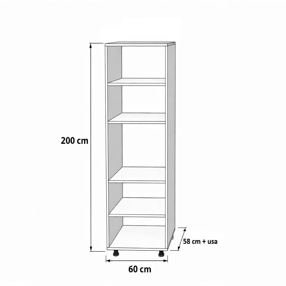 Alcatuit din corp inalt de 215 cm, compartimentat cu rafturi si 2 usi.